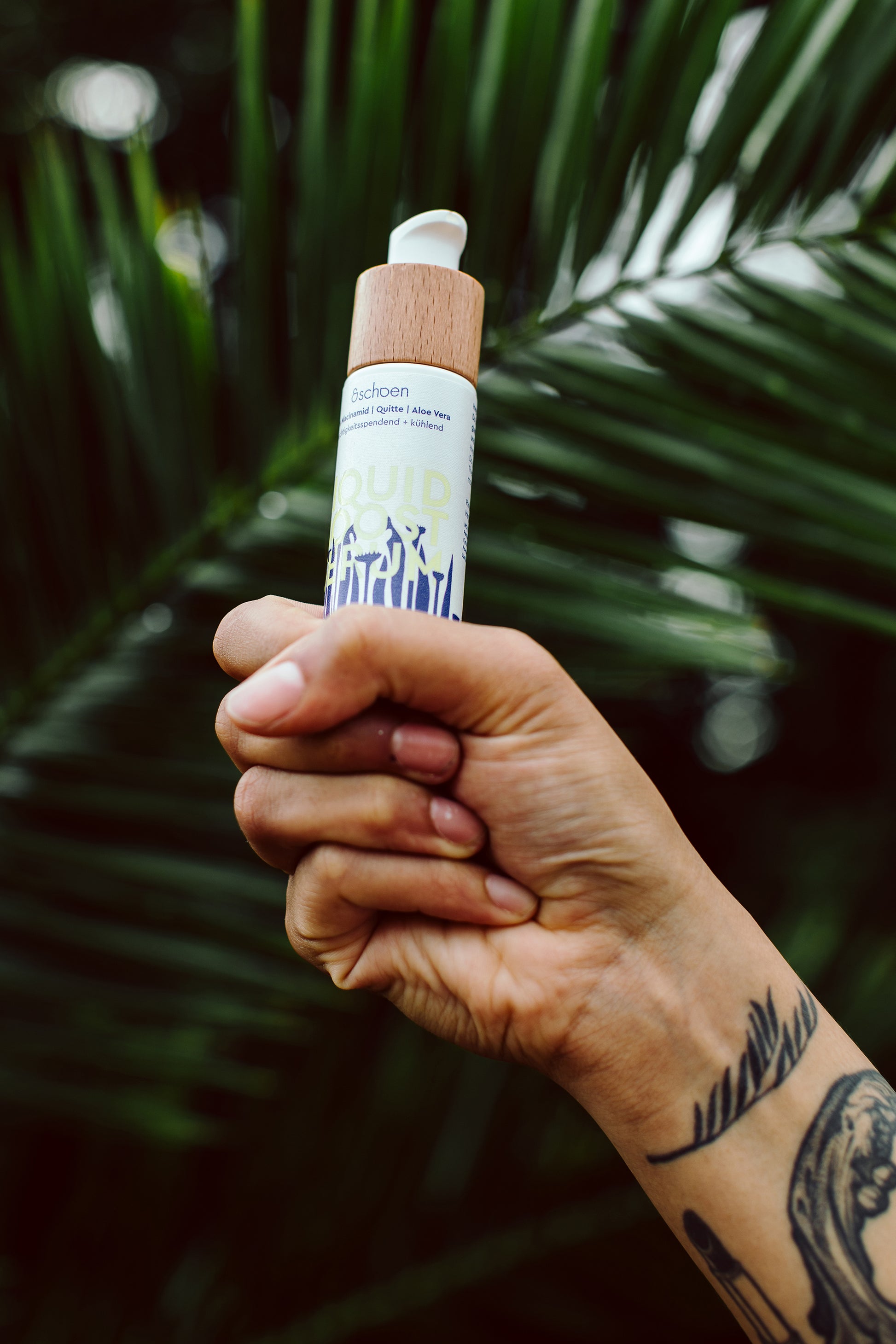 Im Sommer: Trage nach dem Liquid Boost Serum deine Sonnencreme/Gel/Lotion auf. Die leichte Konsistenz des Serums sorgt dafür, dass du dich nicht zu „bedeckt“ fühlst. Nach einem Sonnenbad oder Sport kannst du es großzügiger auftragen – Die Aloe vera und die Quitte versorgen deine Haut intensiv mit Feuchtigkeit, während Niacinamid die Hautbarriere stärkt und vor äußeren Reizen schützt.